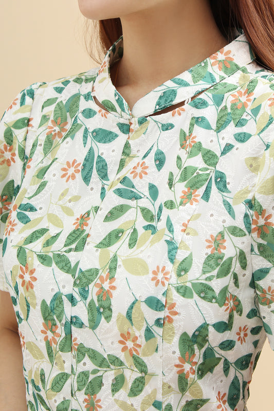 Mandarin Collar Eyelet Mini Dress