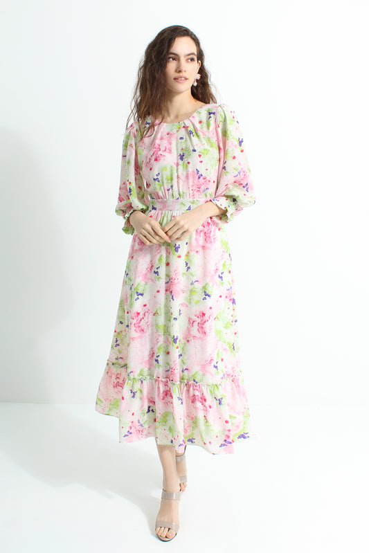 Roselle Puff Sleeve 3D Textured Floral Mini Dress