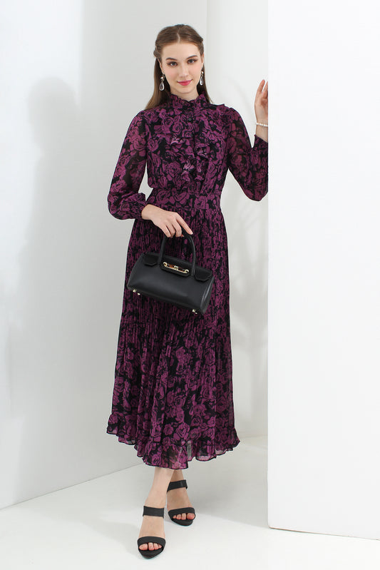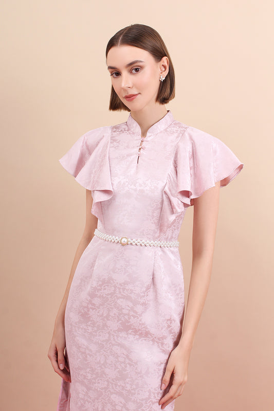 Eternal Bloom Chiffon Sleeve Jacquard Mandarin Dress