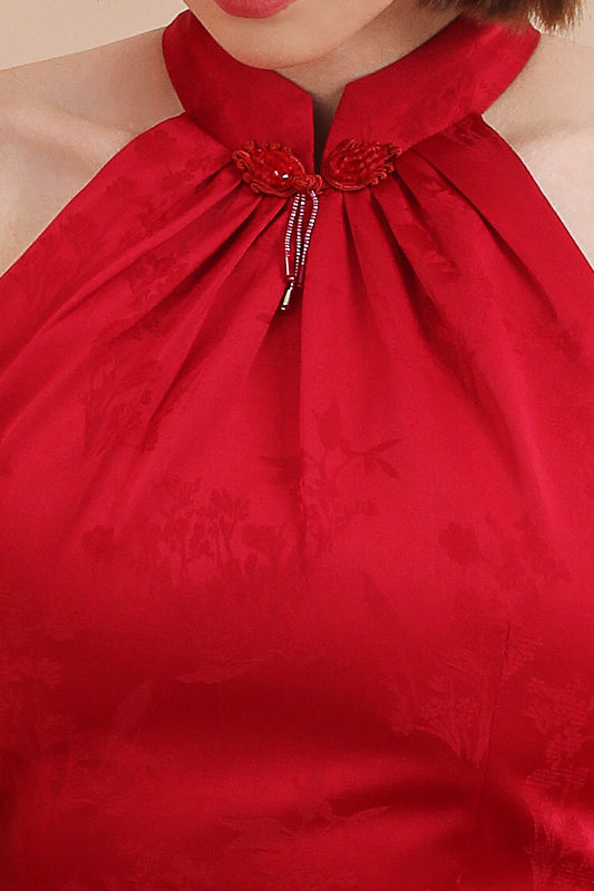 Qipao Halter Mandarin Jacquard Ruffle Hem