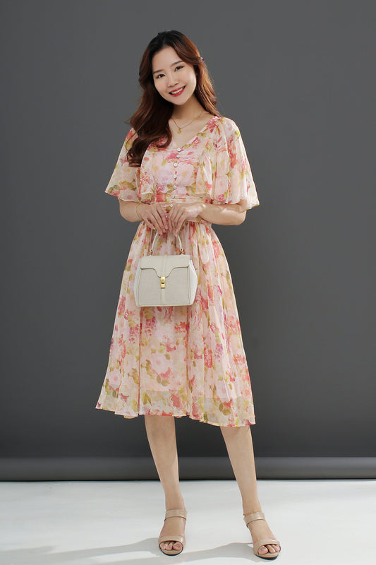 Qipao Mandarin Knot Floral A-Line Ruffle Hem Dress