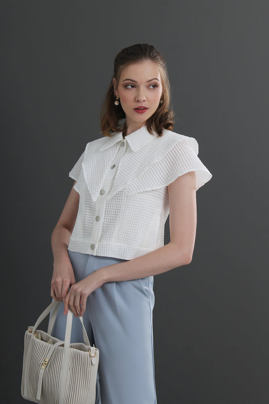 Donna Vintage Puff Sleeve Lapel Collar Blouse Fashion Waisted Button Top
