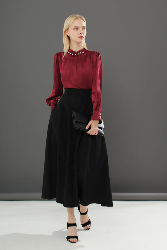 High Slit Midi Skirt with Pearls