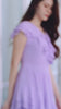 Woman wearing a purple lavender ruffled maxi dress