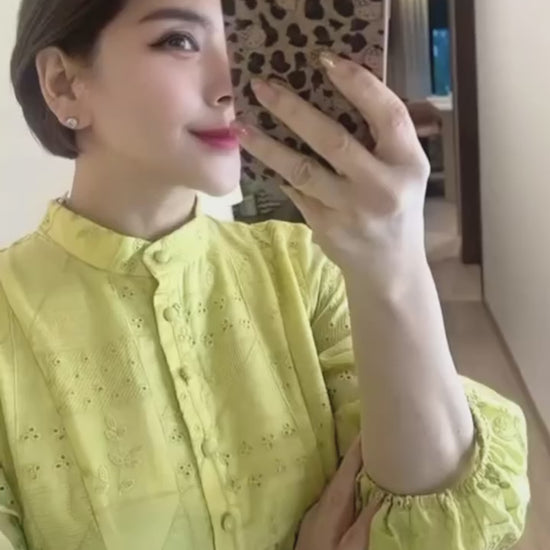 Light, breezy, and full of feminine charm, the Daisy Eyelet Puff Sleeves Mini Dress is designed for effortless elegance. Featuring delicate embroidered eyelet details, a button-up neckline, and voluminous 3/4 puff sleeves, this dress offers a soft, romantic silhouette. The tiered skirt adds movement and comfort, making it a versatile piece for any occasion.