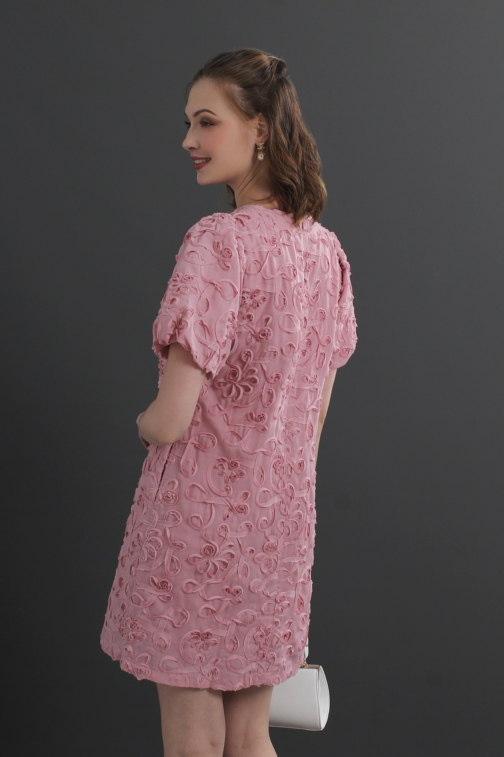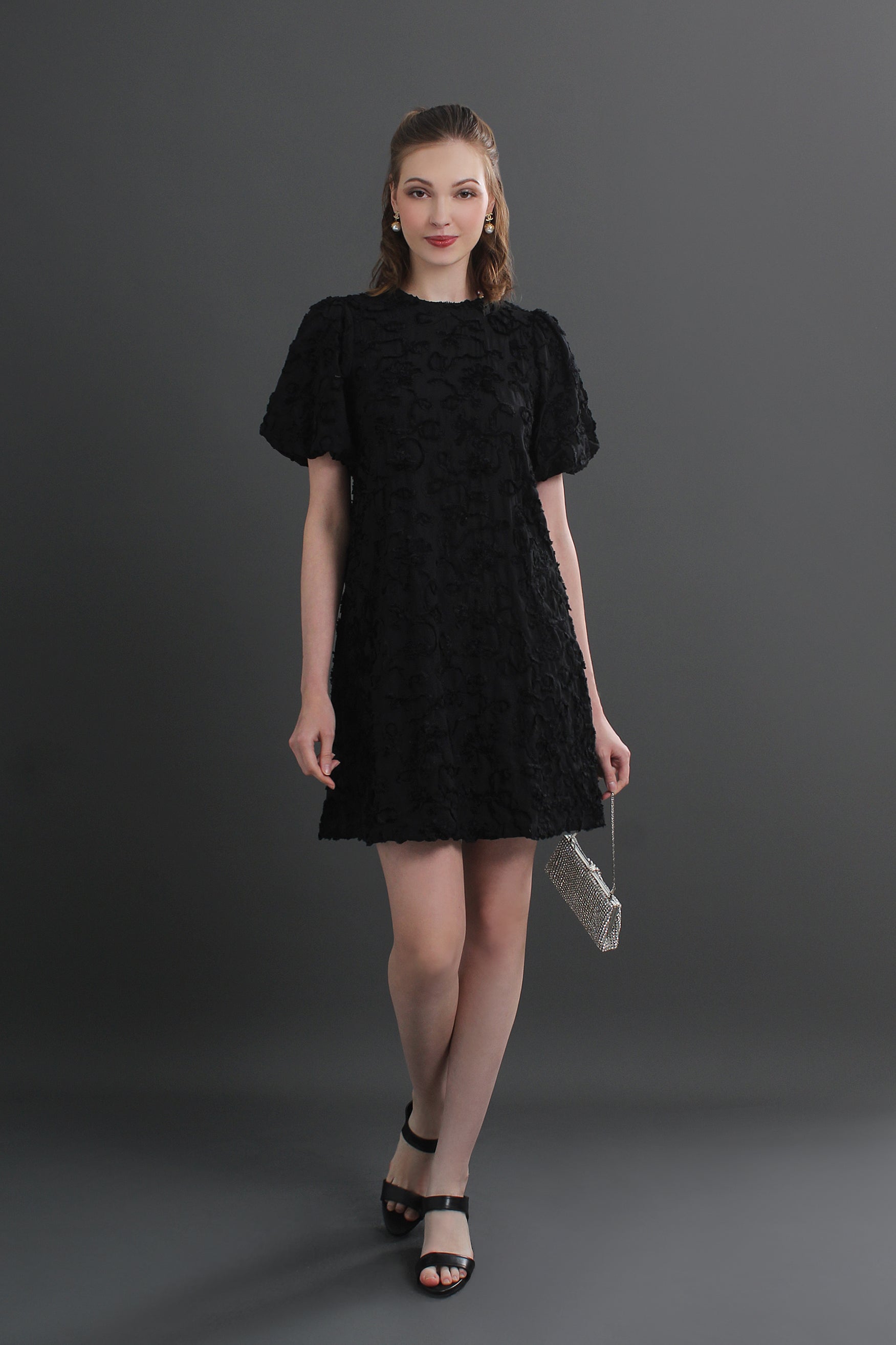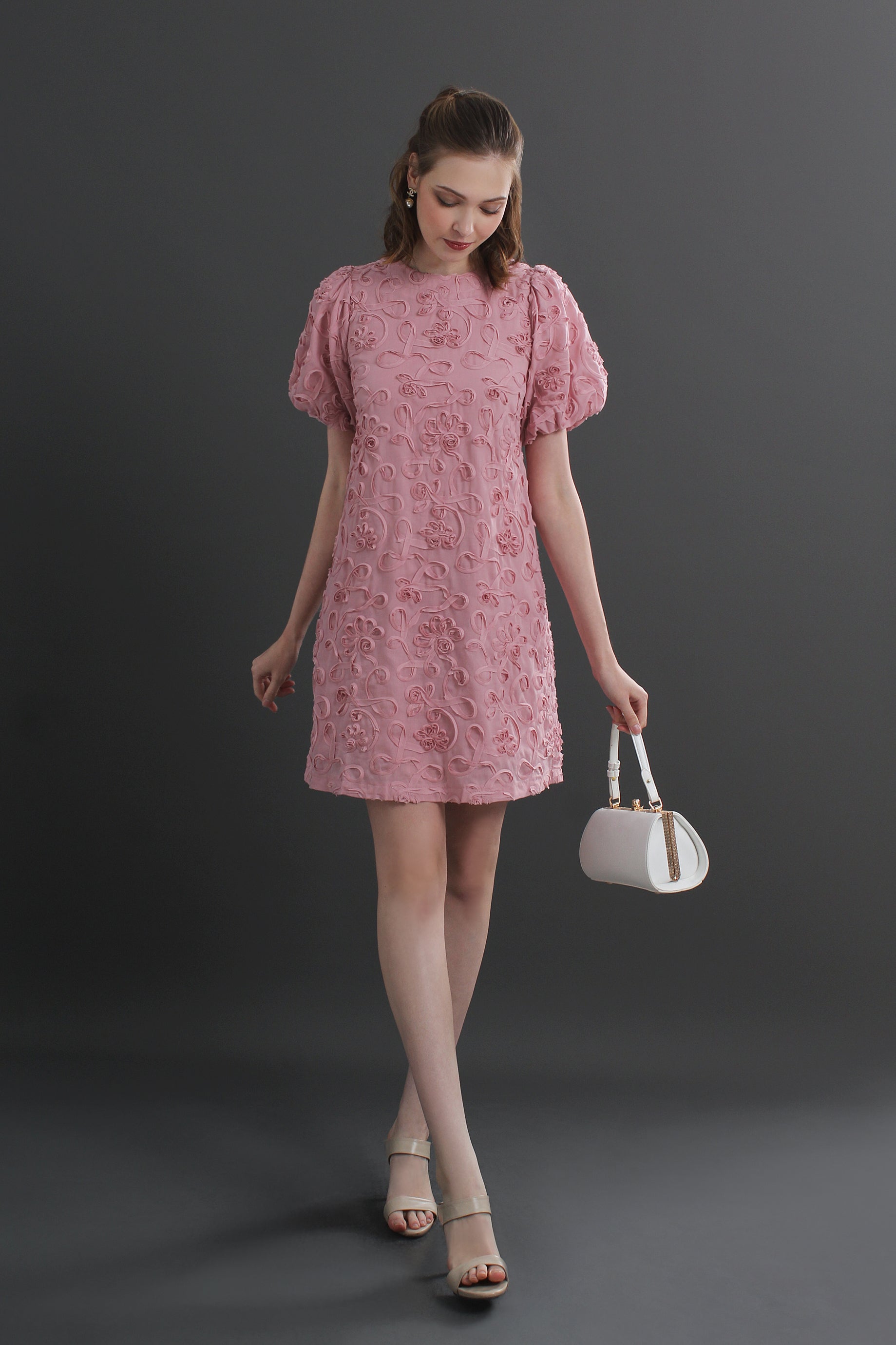 Roselle Puff Sleeve 3D Textured Floral Mini Dress