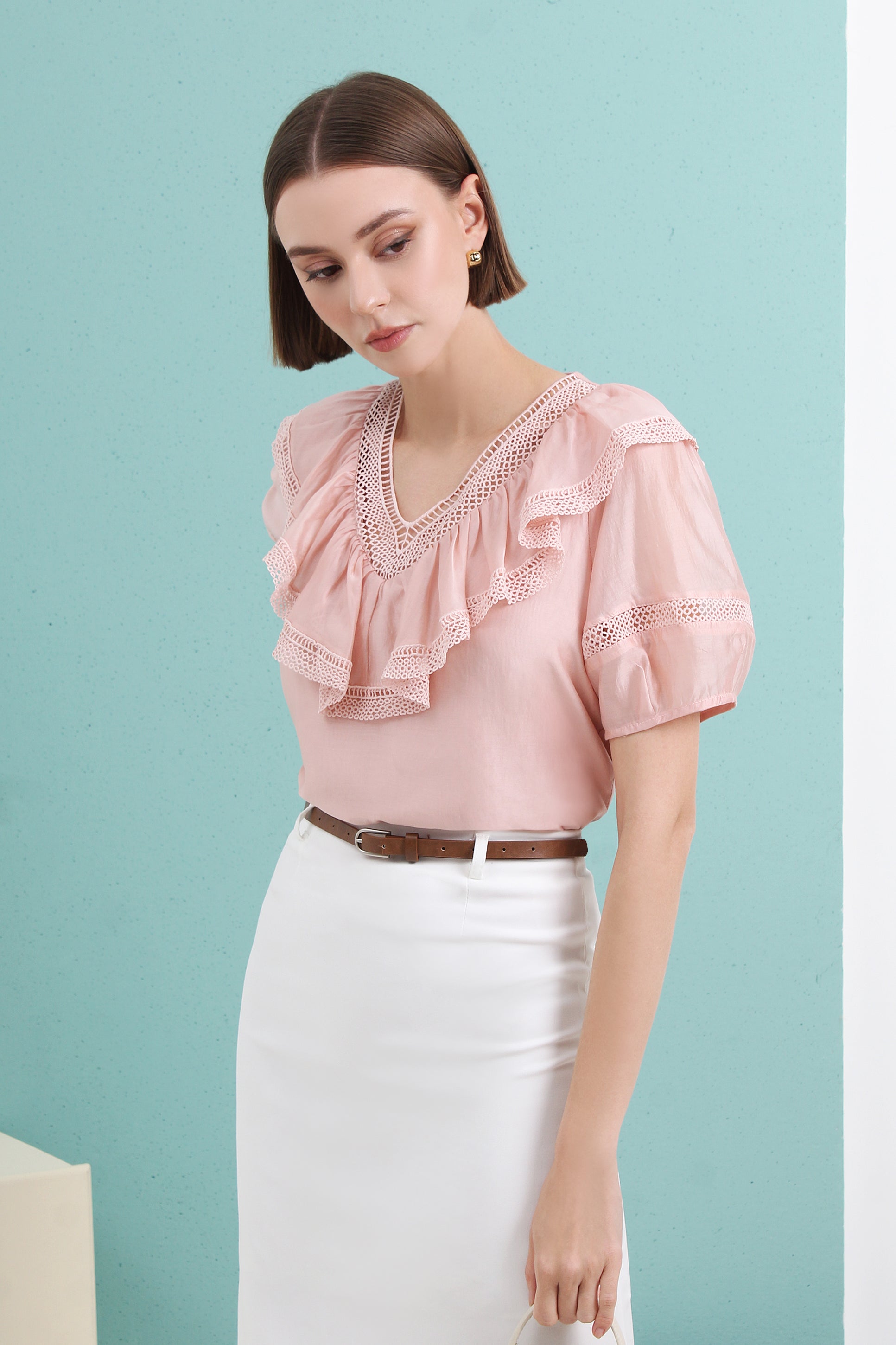 Ainsley High-grade V-neck Ruffled Short-sleeved Chiffon Blouse