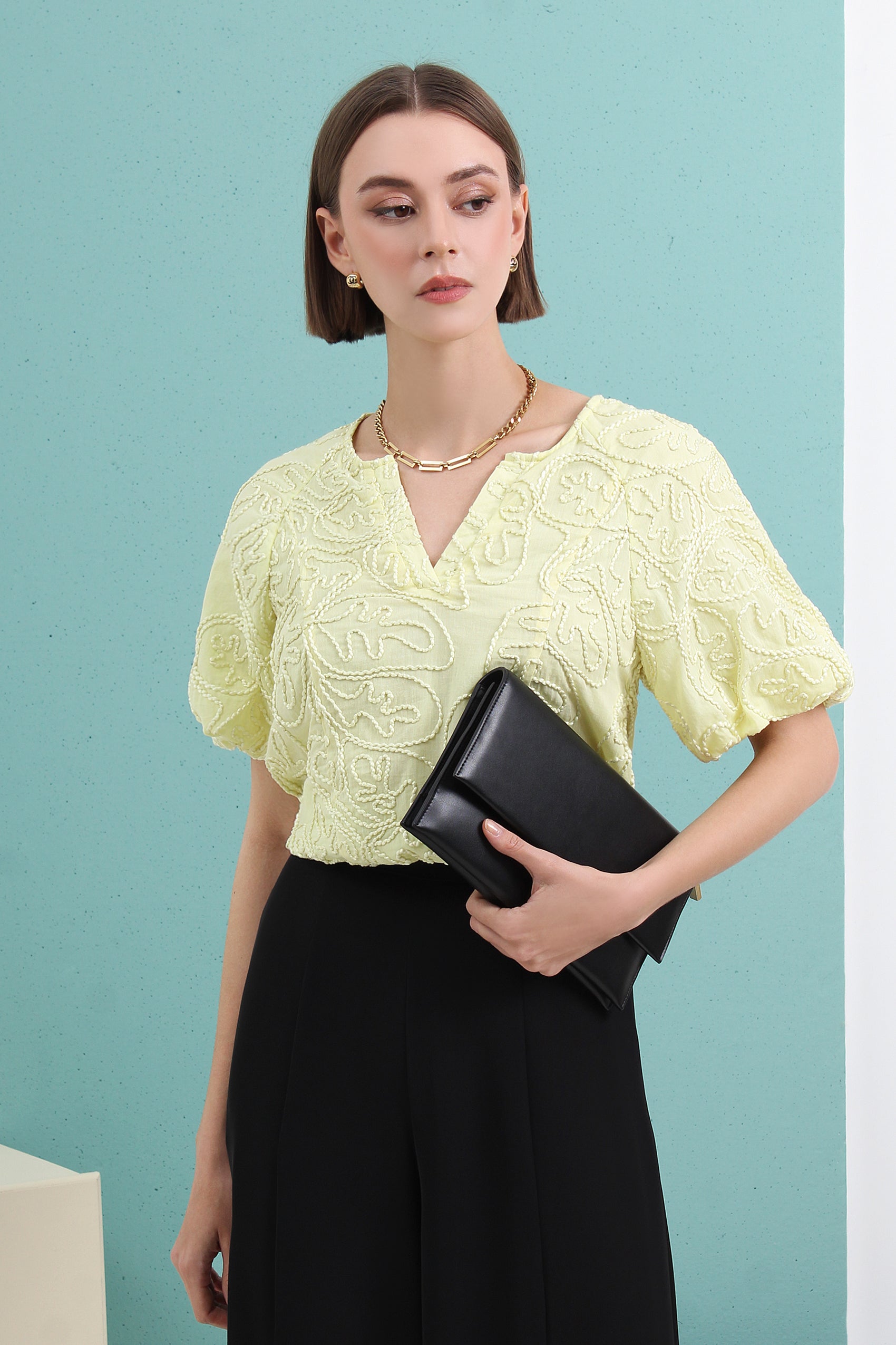 Caia Half Sleeve V-neck Hollow Out Stylish Shirts Vintage Elegant Blouse