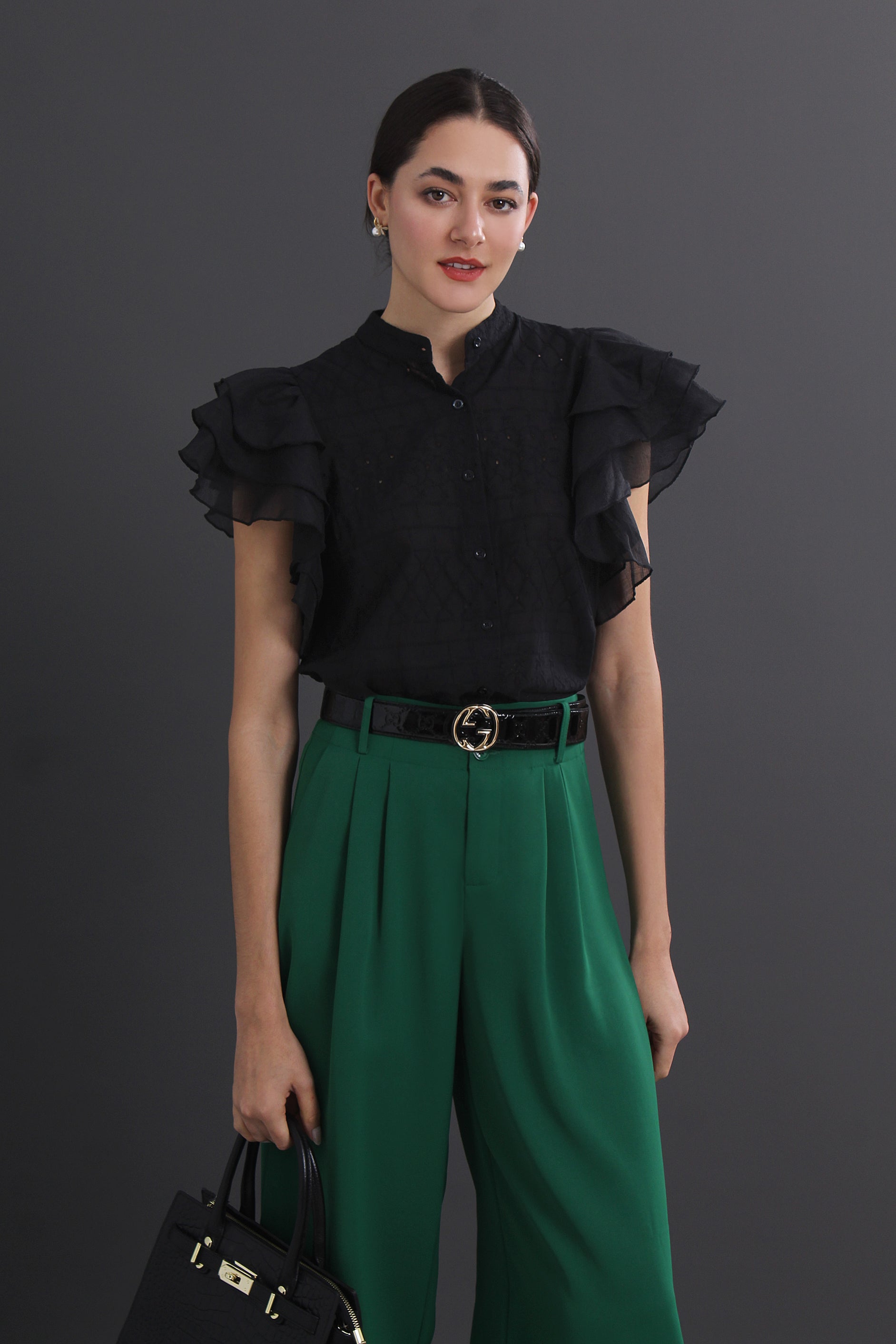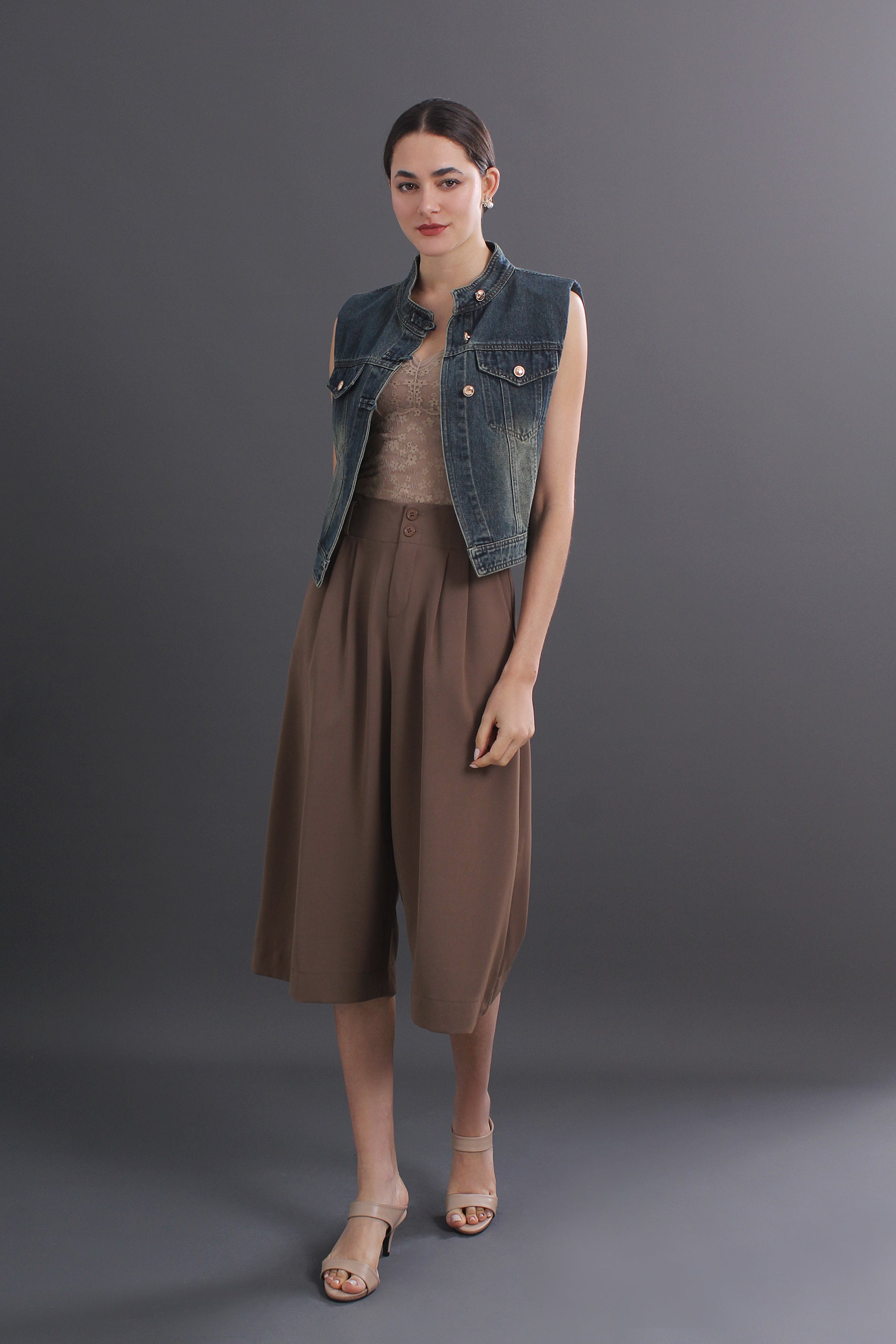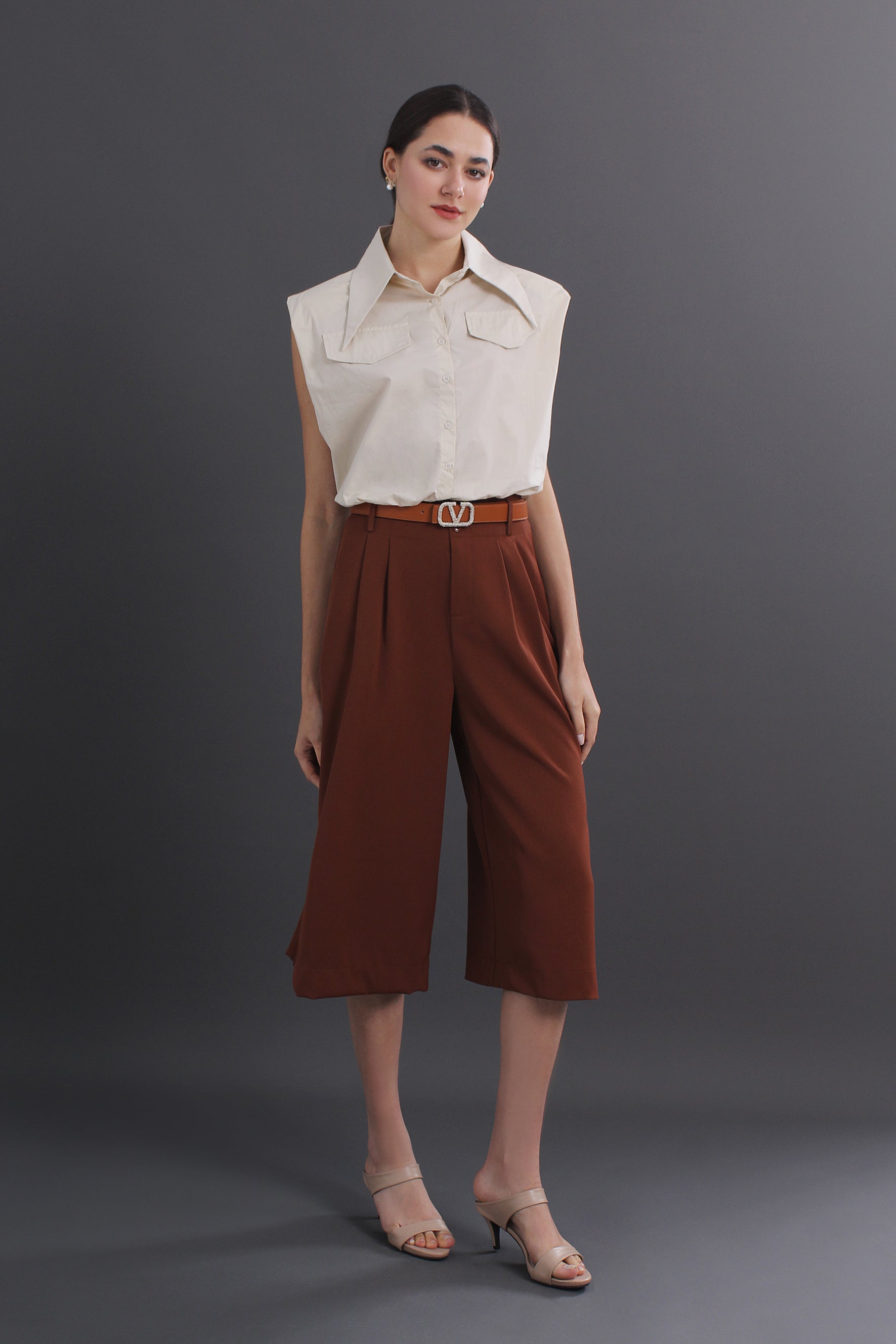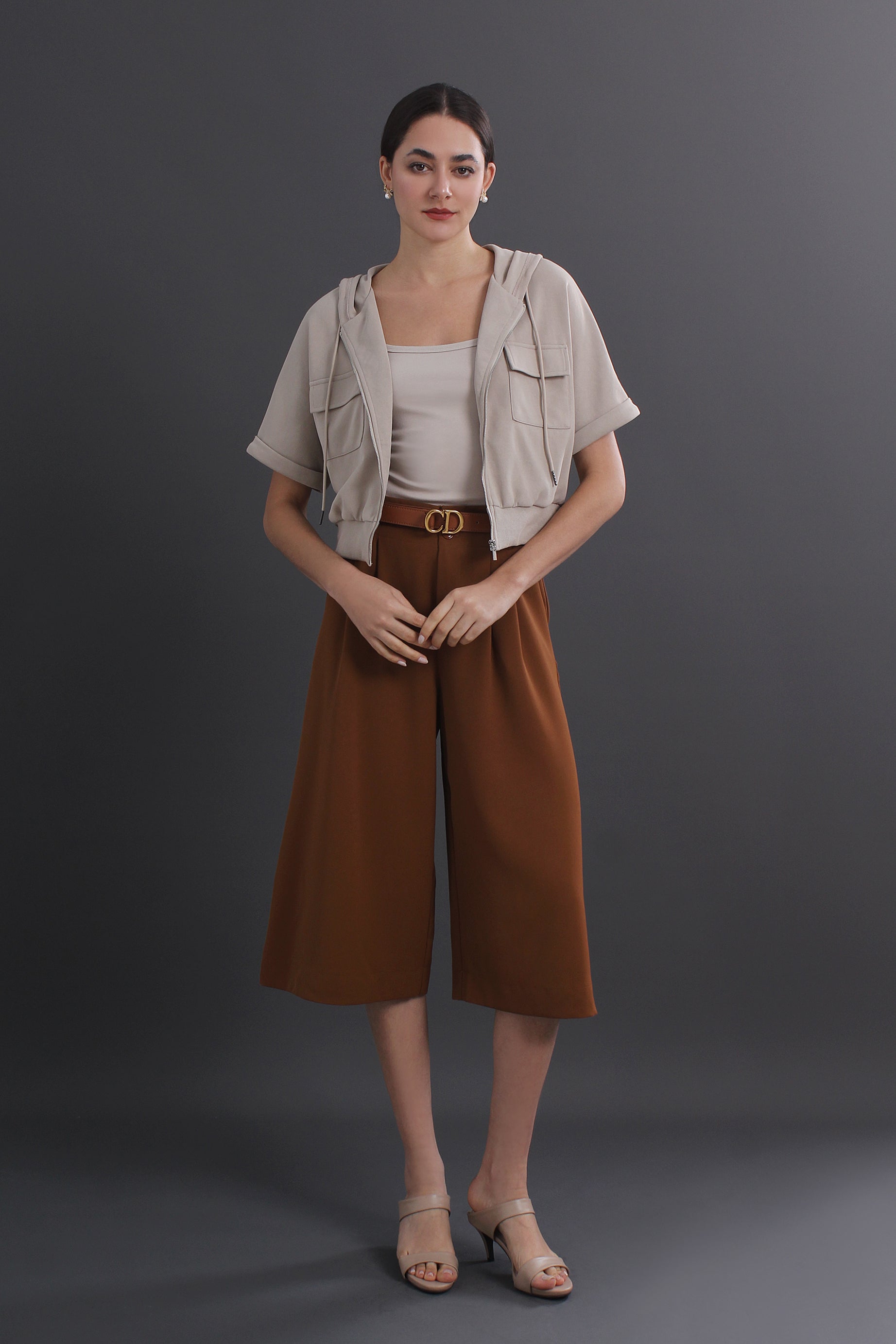 Agatha Plus Size Solid Color Wide-Leg Capri Pants With Pockets